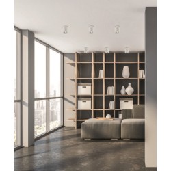 Série de lampes de plafond réglables pour l'intérieur, structure en aluminium peinte électrostatiquement en blanc mat ou noir mat, partie avant de couleur argent.